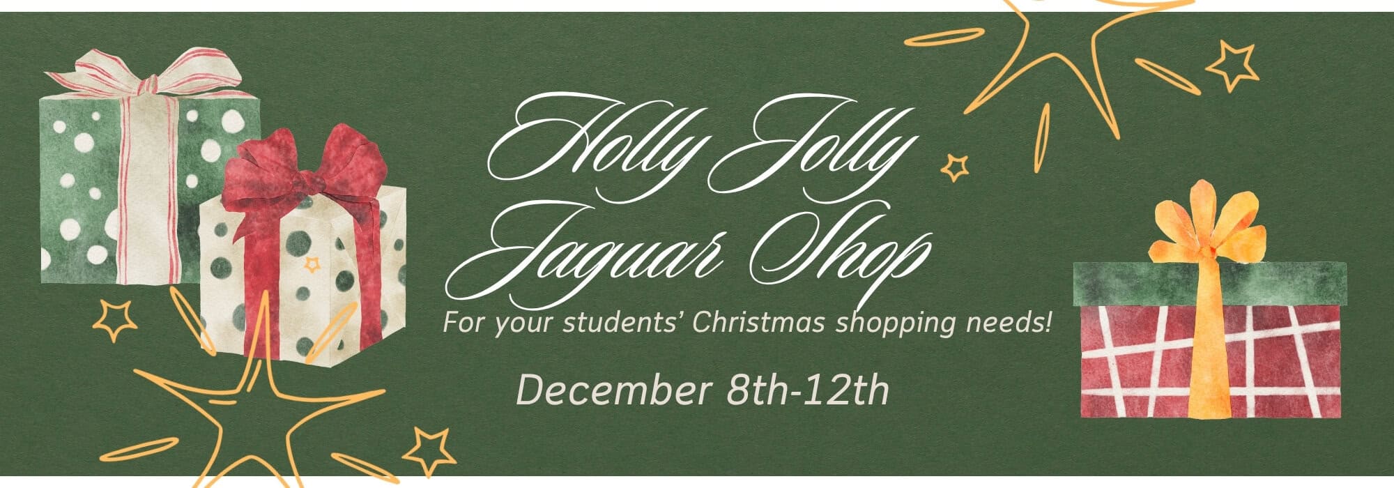 Students can shop in the Holly Jolly Jaguar Shop from Monday, December 8th through Friday, December 12th.  Items are on a first come basis so some popular items do sell out fast.   Items are sold for between $2-10 each.  No items are priced over $15.  Once a student has an E-wallet or cash they are welcome to shop.